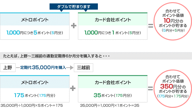 ソラチカカードは、カード利用で貯まる「Oki Dokiポイント」以外に、東京メトロ乗車や交通系ICカード「PASMO」利用で、「メトロポイント」が貯まります。