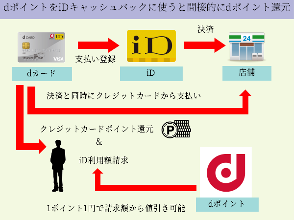 iDは利用額に応じたクレジットカードポイントが貯まる電子マネーなので、間接的にdポイントによる支払いでポイント還元を受けられることになります。