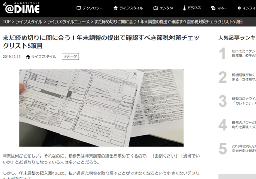 まねーぶ記事:【2019年版 年末調整】サラリーマン向け節税対策チェックリスト5項目(税理士監修)