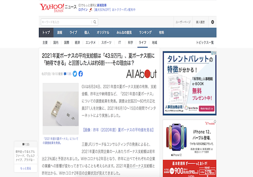 株式会社オールアバウト『AllAboutNEWS』様に記事にしていただきました(Yahoo!ニュース掲載)